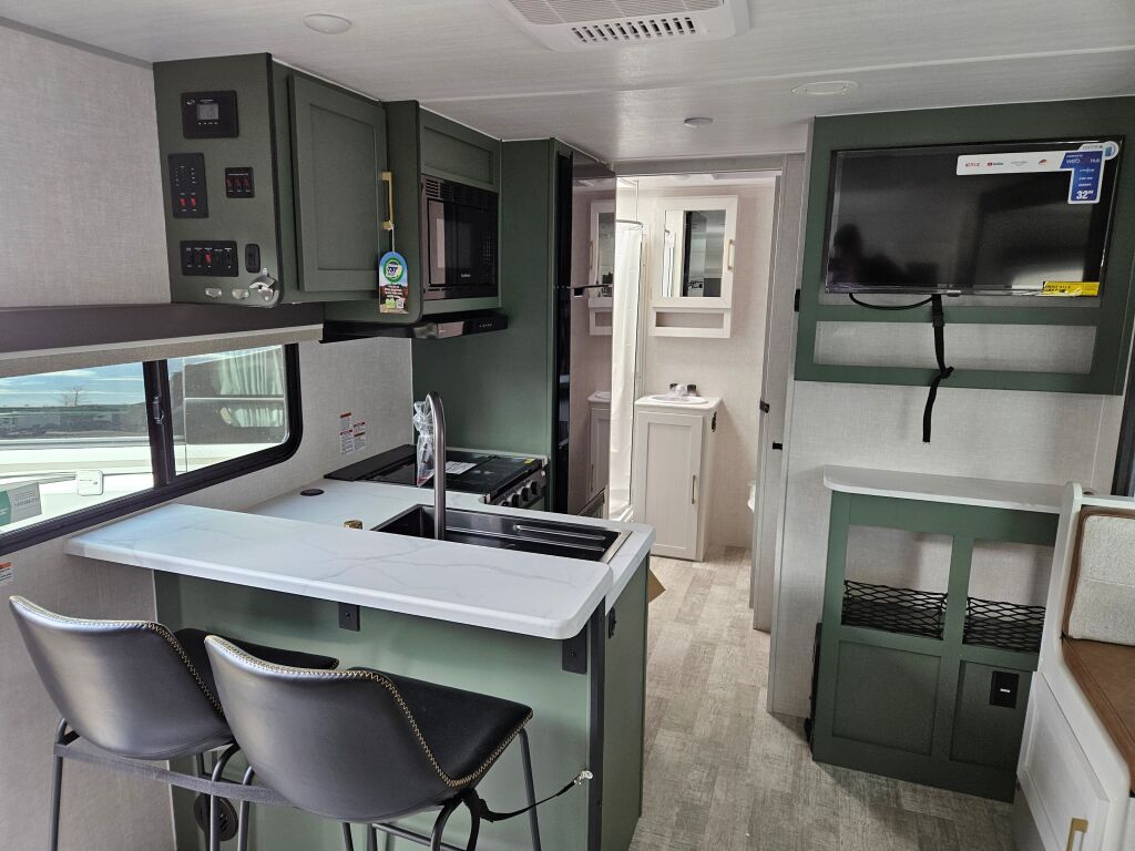 The Forest River No Boundaries travel trailer integrates advanced technology and thoughtful design to keep you connected and comfortable during your adventures. Equipped with a TV and a user-friendly control panel, managing your entertainment and trailer functions is straightforward. Designed for extended off-grid experiences, select No Boundaries models feature roof-mounted solar panels and a sealed, heated underbelly to enhance off-grid capabilities. Ample storage solutions, residential-style appliances, and a well-appointed shower provide the comforts of home wherever your travels take you.