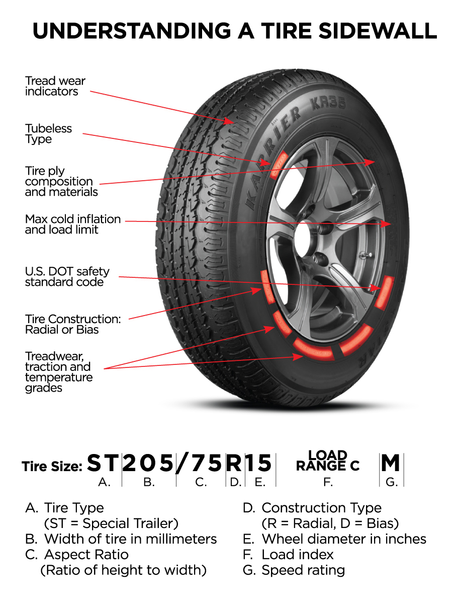 Every RV tire has important information printed on its sidewall. Understanding what these markings mean helps you choose the right replacements, inflate your tires correctly, and stay within safe weight limits.
